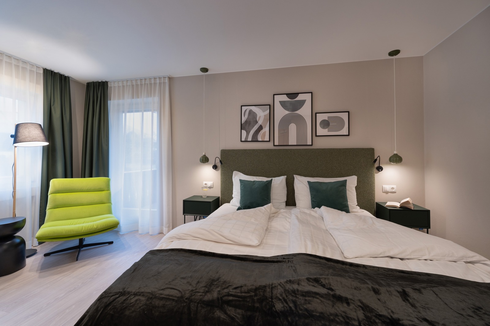 Small, old, ‘dusty’ rooms. Absolutely no favourite rooms for guests. Not really rentable. What could be the solution? Let's give these rooms a colourful touch and transform them into something very special, small but mighty. Four different designs give each room its own personality and the once ‘dusty’ rooms are a thing of the past.