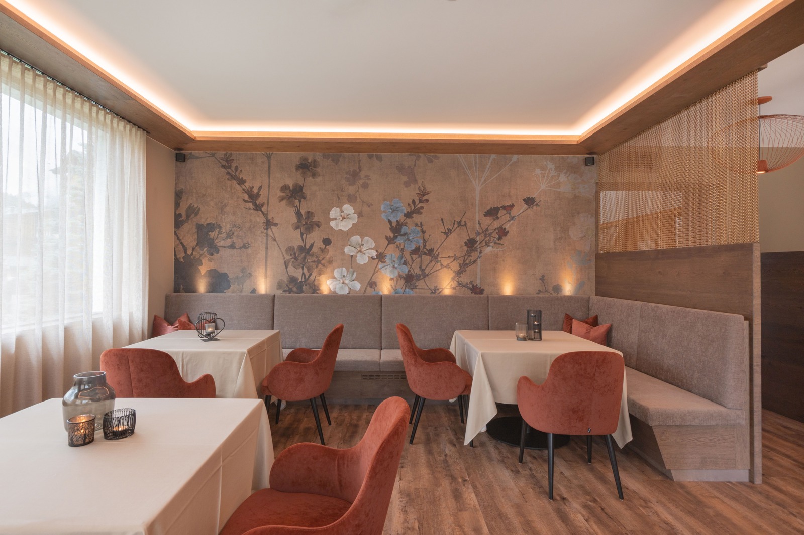 Three new areas, each offering a unique experience. An exclusive gourmet restaurant as a fine highlight, an additional dining room for even more enjoyment, and a light-flooded veranda with stylish wallpaper accents and warm brick tones. Simply put: we have once again created style and a feel-good atmosphere for our customers. Translated with DeepL.com (free version)