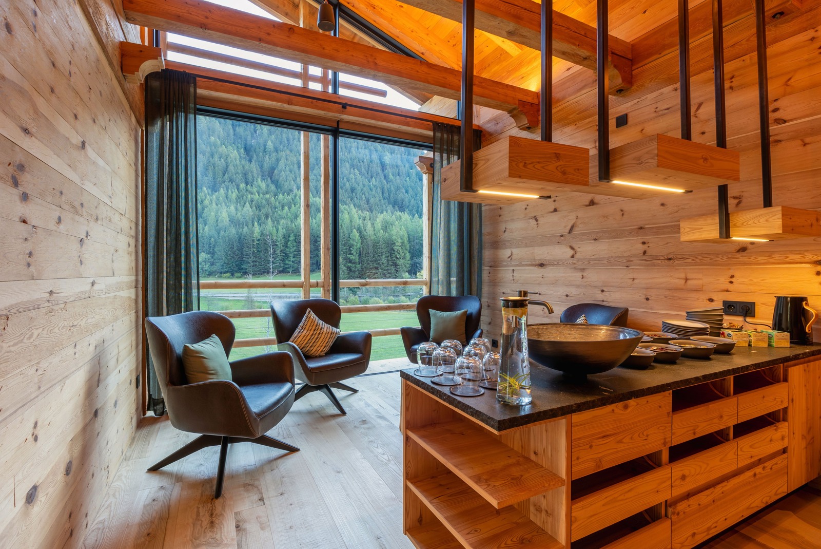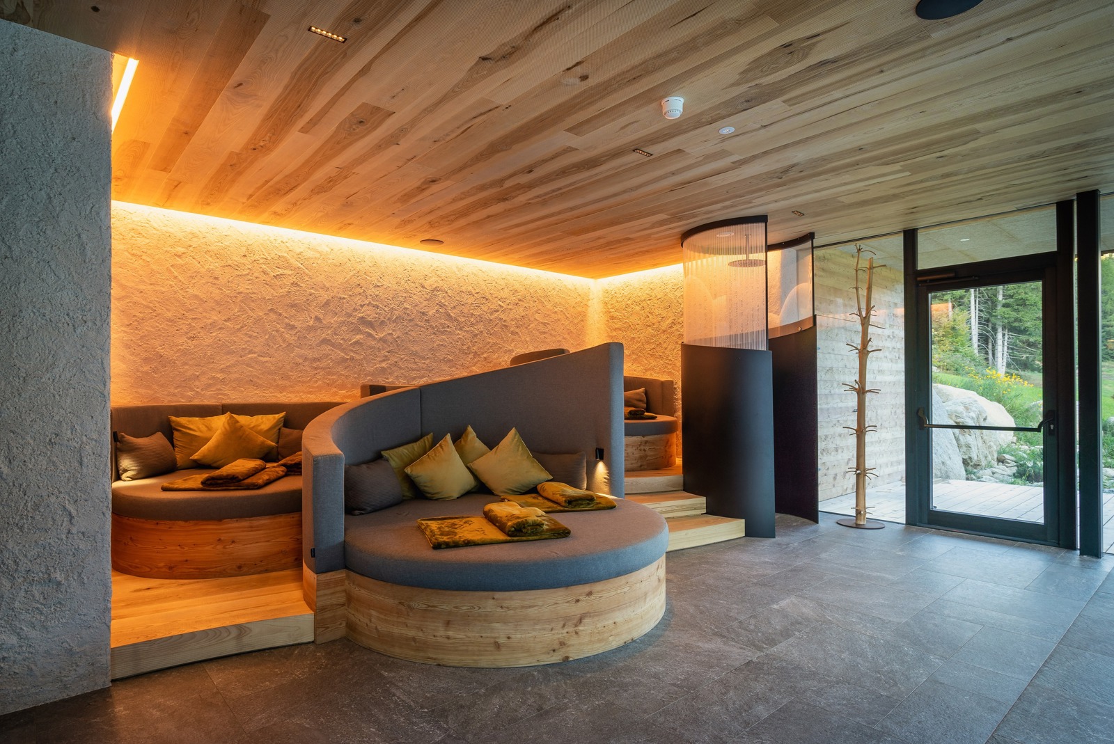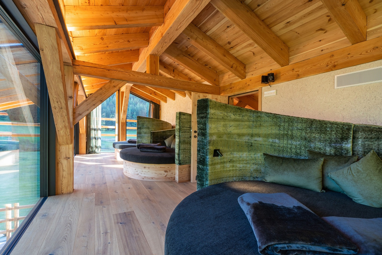 ImmergeteVi nella natura, immergeteVi nelle acque limpide, immergeteVi nel verde del bosco. La fusione dei toni della terra e del verde nell'area tessile era il nostro compito e questo ha portato a un'esperienza unica della natura.